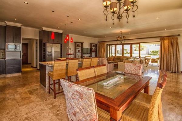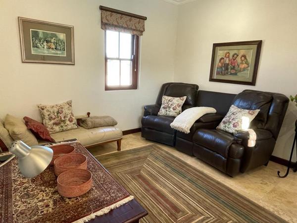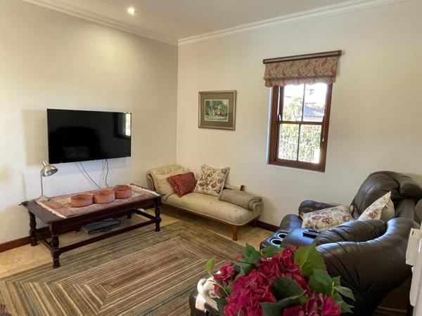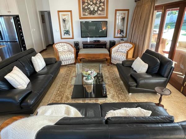 Well furnished lounge with TV full DSTV, doors lead to the spacious covered patio/entertainment area and swimming pool.