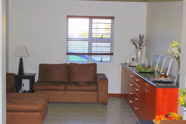 The apartment features a fully equipped kitchen and laundry, flowing into a light-filled open-plan kitchen, lounge, and dining area, perfect for comfortable everyday living. Residents can enjoy access to a swimming pool and a covered braai area, ideal for entertaining or unwinding.