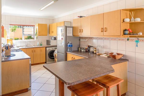 This home is well maintained with modern finishes and offers three large bedrooms, two bathrooms (one ensuite) and a spacious open plan lounge and kitchen with breakfast nook. The living area flows onto the enclosed patio with a built in braai, this patio has sliding doors to the outside for you to choose open air dining or closed if the weather is not suitable.