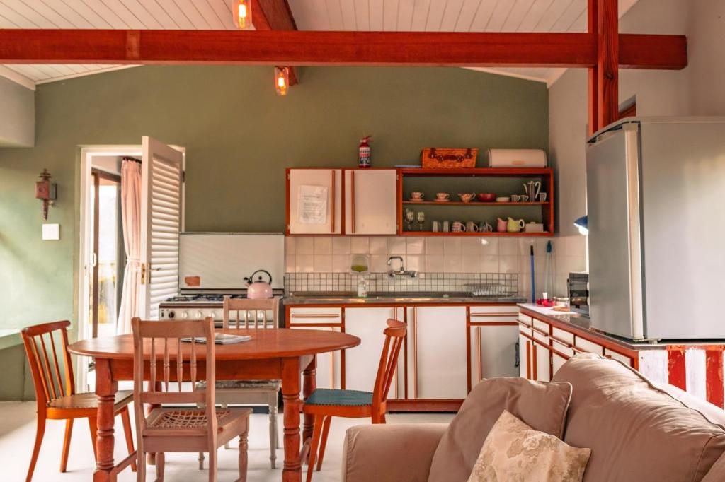 The home features a comfortable queen-sized bed, a private bathroom, and a fully equipped kitchen for all your self-catering needs. An indoor fireplace adds an extra layer of comfort for cooler evenings, creating the perfect setting to unwind with a glass of wine or a good book.