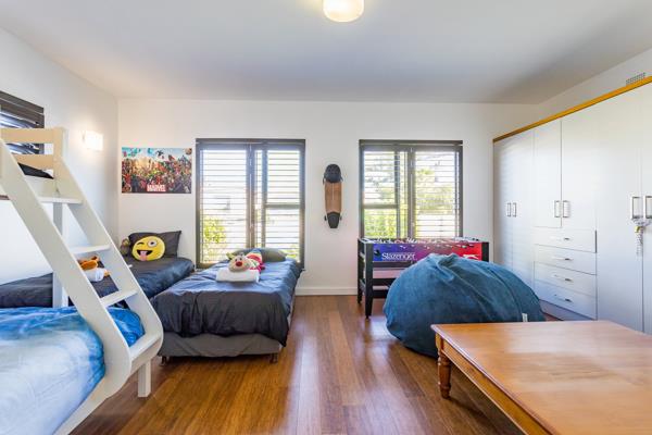 To make longer stays more comfortable there is a separate office with bathroom and laundry room. Downstairs you will find a kid''s play room with a ping pong table and TV. Fiber internet, SmartTV to stream your own Netflix, stay connected always with an inverter installed. From this lounge / play room sliding doors take you to an undercover patio with brick braai.
