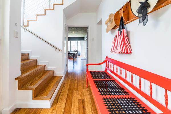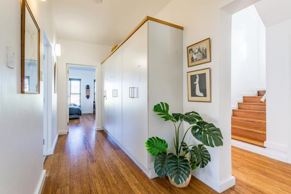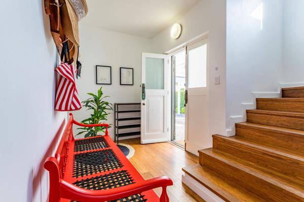 As a double-story luxury home, it is perfectly designed for entertaining friends and family with a selection of indoor and outdoor areas. Upstairs is filled with light through stacking doors and big windows, which lead to the deck boasting magnificent mountain and golf course views. Here you can use the gas braai and enjoy the sunset with a glass of wine. The free-flowing open spaces between the lounge, dining room, and kitchen create a sense of easy living. The well-equipped kitchen ensures that cooking is a breeze with extra appliances like a Kenwood, ice machine, air fryer, and dishwasher making washing up quick and convenient. The lounge also has a coal stove for snuggling in the winter.