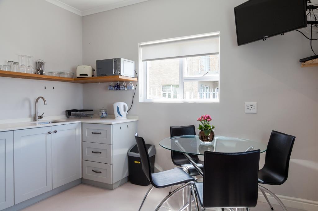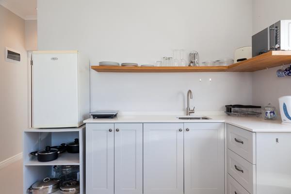 The open-plan kitchen and dining area are filled with natural light and provide seamless flow to the bedroom. The studio has one bedroom with a double bed and an en-suite shower. For added convenience, on-street parking in front of the home, a wheelchair-friendly ramp, and a private entrance to the studio. In case of load-shedding, the studio has a backup power system to ensure essential amenities stay connected.
