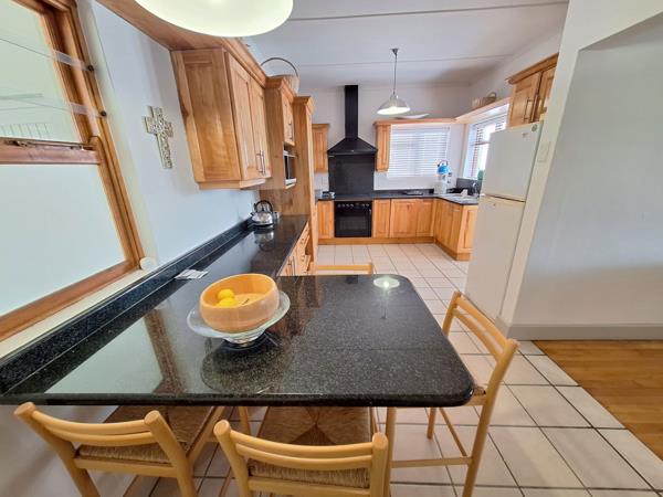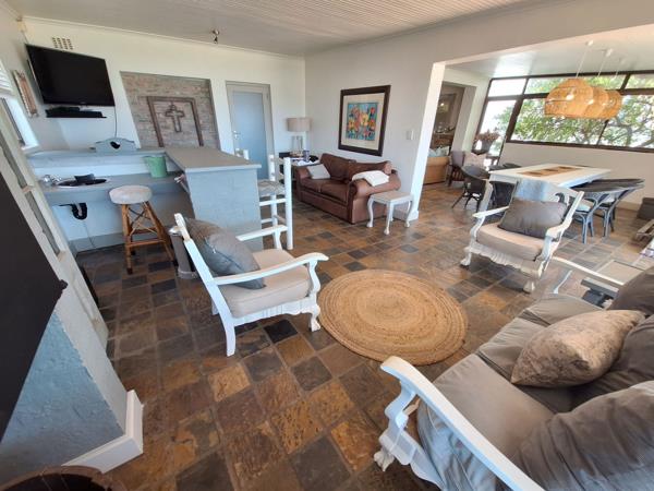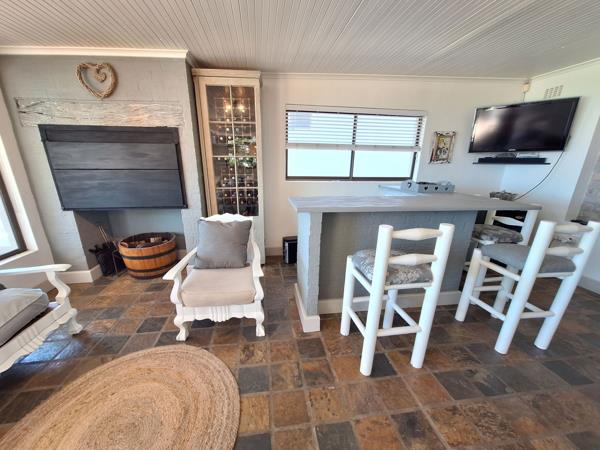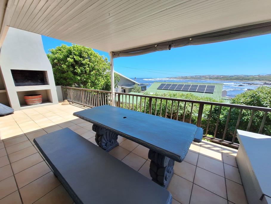 The house is airy and friendly. The open plan living & dining area, along with the braai room & bar, all boast close-up views over Harderbaai. A long, covered balcony with a second built-in braai and outdoor seating is the best place in the house! The kitchen is spacious and there is a separate laundry & scullery.