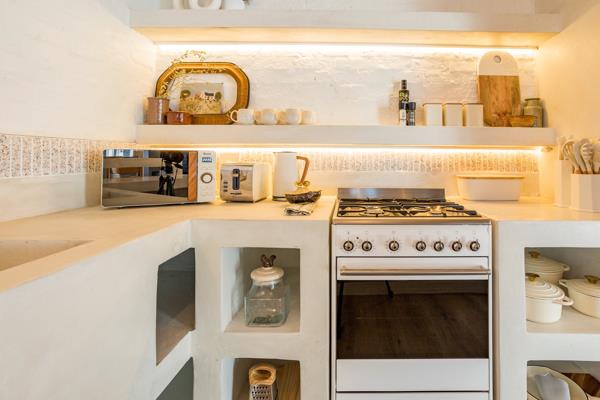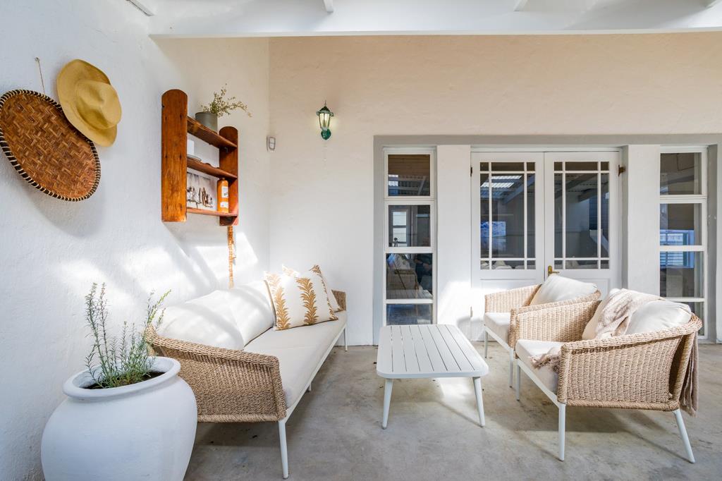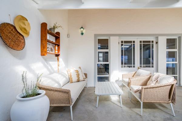 This exquisite home boasts the most beautiful interior, free-flowing, and light-filled, providing a perfect escape for a small group seeking respite from city life. A well-equipped kitchen with high-end finishes like SMEG appliances and Le Creuset cookware includes a dishwasher, washing machine, and tumble dryer, ensuring a comfortable stay. The open-plan lounge, dining room, and kitchen feature a SmartTV, with Fiber so you can sign into your own streaming accounts for entertainment. It also has a fireplace for those chilly winter nights. French doors lead to an enclosed undercover courtyard, with brick braai, and stairs take you to a small deck with breathtaking views of the sea on one side and majestic mountains on the other. Perfect for any season.