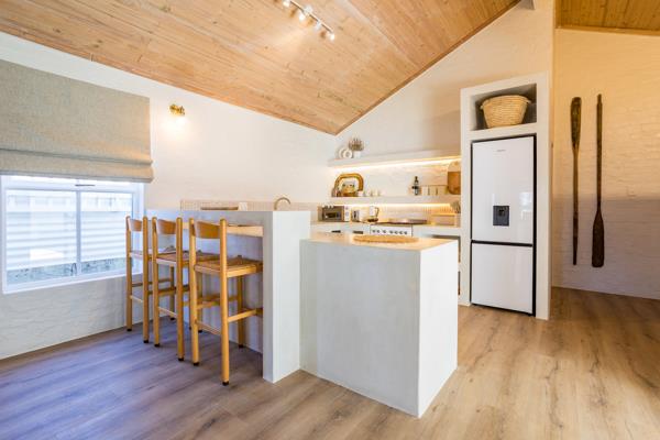 This exquisite home boasts the most beautiful interior, free-flowing, and light-filled, providing a perfect escape for a small group seeking respite from city life. A well-equipped kitchen with high-end finishes like SMEG appliances and Le Creuset cookware includes a dishwasher, washing machine, and tumble dryer, ensuring a comfortable stay. The open-plan lounge, dining room, and kitchen feature a SmartTV, with Fiber and DSTV Netflix for your entertainment. It also has a fireplace for those chilly winter nights. French doors lead to an enclosed undercover courtyard, with brick braai, and stairs take you to a small deck with breathtaking views of the sea on one side and majestic mountains on the other. Perfect for any season.