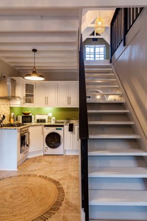 Upstairs in the loft area, you''ll find bedroom three, which features two single beds and offers amazing mountain views. This upstairs space is perfect for someone who values a little more privacy.