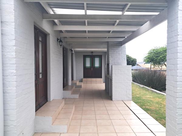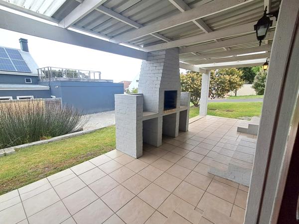 The home features a bright, open-plan living area that seamlessly connects the fully equipped kitchen, dining, and living spaces. These flow out to a lovely braai stoep, ideal for outdoor dining and entertaining. A separate scullery and laundry room offer direct access to the single automated garage for added ease. The property includes a tumble dryer & washing machine. No Dishwasher!