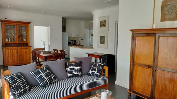 Furnished rental in Onrus. A lovely & light-filled cottage with open plan layout. Located within a small security complex in the heart of Onrus.
