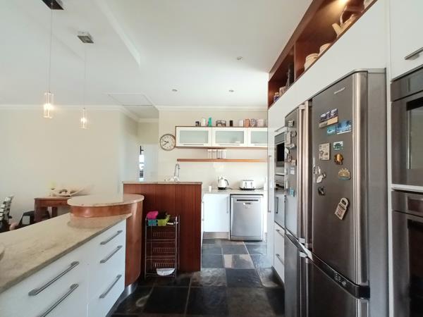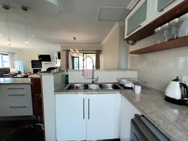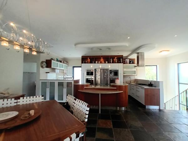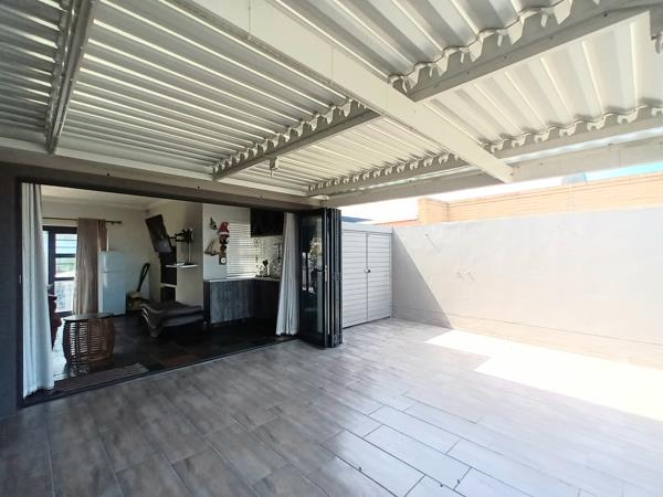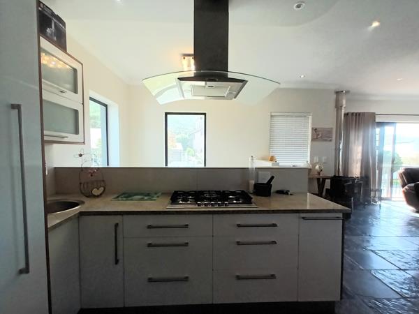 The upper level is designed for effortless entertaining, with a stylish open-plan kitchen, living, and dining area flowing seamlessly through sliding doors onto a large patio. Here, you can take in beautiful ocean and mountain views while enjoying the built-in braai and unique French-style barperfect for hosting and relaxed outdoor living.