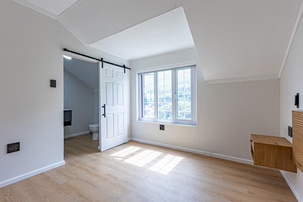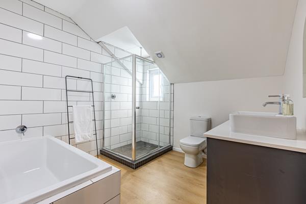1st Bedroom with en-suite and built in cupboards. En-suite is modern with shower, basin and toilet.