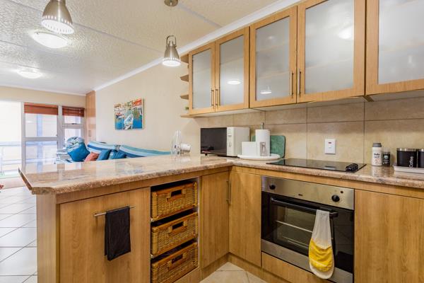 The open-plan kitchen, dining, and living areas are filled with natural light and offer a spacious and seamless flow. Bedroom 1 features a double bed and bedroom 2 has a bunk bed and a single bed. These two bedrooms share a full bathroom. Both rooms are equipped with built-in cupboards, providing ample unpacking space for longer stays.