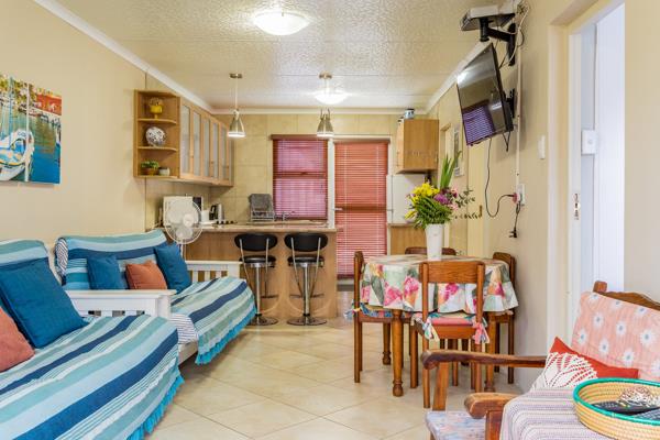 This little home provides all the essentials, you only need to bring your suitcases and braai wood. The undercover patio features a seating area, and outside is a brick braai in the garden for outdoor enjoyment. Inside, you can relax and entertain yourself with amenities such as DSTV. A fully equipped kitchen makes cooking a breeze and a washing machine in the bathroom makes longer stays convenient.