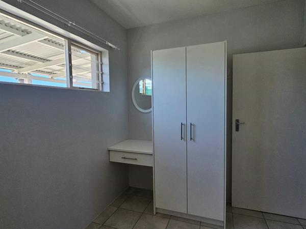 Step into a spacious living room that serves as the heart of the home, featuring generous dimensions and direct access to an outdoor braai area. This seamless indoor-outdoor flow is ideal for entertaining guests or enjoying a quiet evening under the stars. The living space extends to a small garden area, perfect for those with a green thumb. While the owner will maintain the lawn, tenants with a passion for gardening are encouraged to cultivate and nurture the garden.