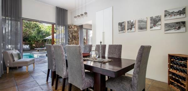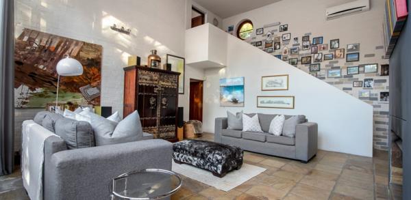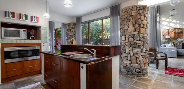This unique, architecturally designed home in Vermont is well suited for a small family. It has a contemporary and modern finish with open plan living and a large open patio garden with a pool. The location is in the sought-after Soutpan close, walking distance from the famous Onrus Salt Pan. A large living room opens up onto the outdoor patio garden. The fully fitted kitchen opens onto the dining room. There are two bedrooms. Downstairs ensuite ideal for children with the main en-suite bedroom upstairs.