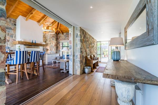 Expansive open-plan interiors spill out onto a sun-drenched deck, sparkling pool, and natural fynbos garden ensuring seamless indooroutdoor living. Every space has been curated for comfort and connection, from the generous lounge and dining areas to the dedicated games room offering ping-pong and foosball entertainment.