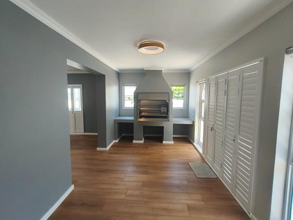Recent upgrades include a new geyser, plumbing, doors, windows, blinds, shutters, clear burglar bars, lighting, kitchen, bathrooms, bedroom cupboards, flooring, braai area, fireplace, garage door, alarm system, paving, tiles, and beautifully refreshed garden planting. Absolutely everything has been redone with quality finishes.