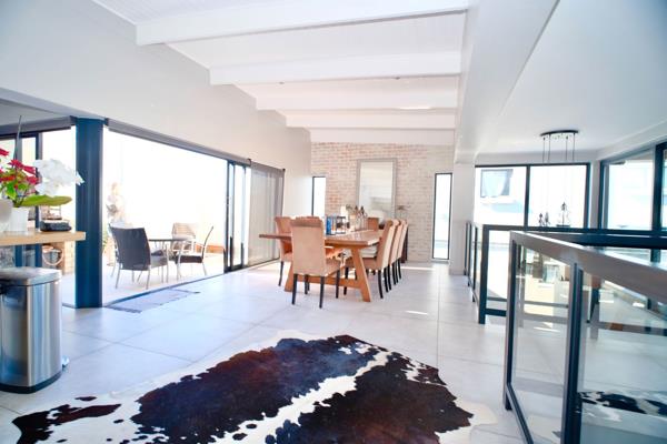 Modern Three Bedroom Home - Calypso Beach. This beautiful three bedroom family home, walking distance to the Beach is situated at Calypso Beach a sought after area in Langebaan. Conveniently located near the Mall, private schools, medical centre and Club Mykonos. The welcoming entrance of this architecturally designed home leads you to a stunning open plan kitchen, scullery and dining room area that flows into a living area both opening up with stackerdoors to a undercover patio overlooking the greenbelt and a cozy wind protected court yard with braai and fire pit area where you can spend special times with family and friends. Three bedrooms with two bathrooms is situated on the groundlevel. All three bedrooms two with en suite opens up to a small and private garden area. Double garage Municipal services not included in rental and is for tenants account