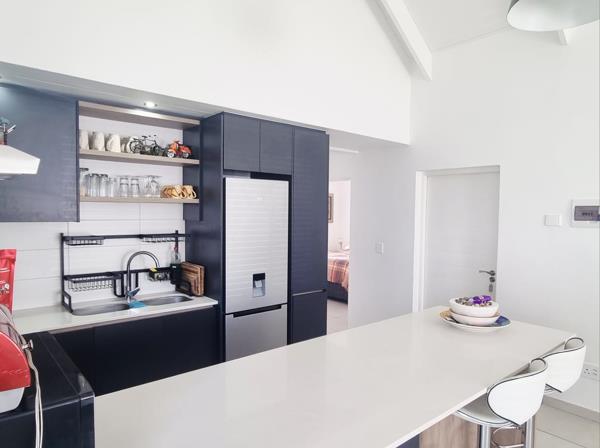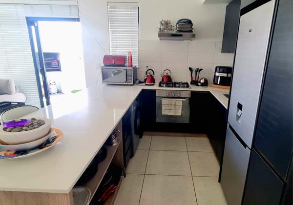 Sliding doors from the living area lead to a cosy covered outdoor braai area, ideal for entertaining or relaxing. Outside patio table and chairs are available if needed.