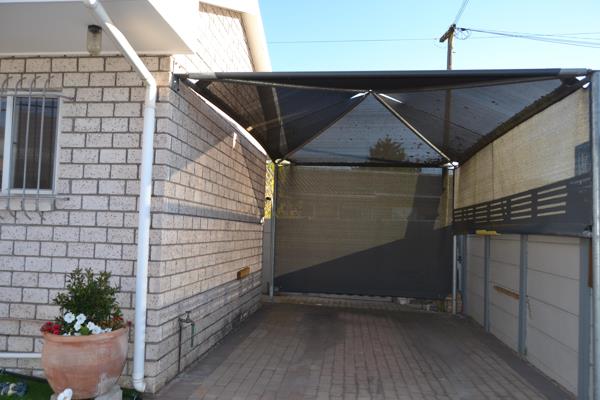 One parking behind electronic gate under carport.