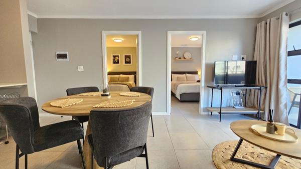 Step inside to find a sleek, open-concept design that seamlessly connects the kitchen and lounge, enhanced by high-end finishes and cleverly designed built-in storage. The space is light, welcoming, and thoughtfully arranged for relaxed, modern living. Both bedrooms are tastefully furnished and include built-in cupboards, with windows that offer a vibrant urban view.