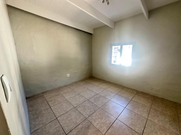 The property is fully walled with a gate, offering privacy and security. Additional security features include a security gate at the back door and burglar bars on all windows.