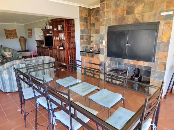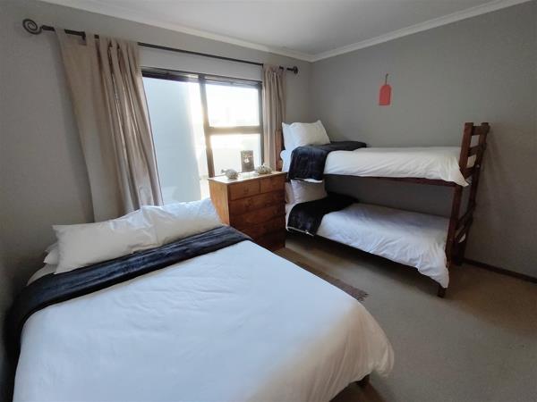 The house consists of 4 bedrooms, 3 bathrooms all with showers. The main bedroom has a queen bed, an en-suite with his and hers basins and a shower and bath, a TV, and a patio with a view of the beach. The second bedroom has a double bed, the third bedroom has a double bed and a bunk bed and the fourth bedroom has 2 single beds. Other amenities include a large lounge with a double sleeper couch, a dining room with two flat screens, full DSTV and a fireplace/built-in braai and an outside cold water shower to rinse off after a day at the beach.