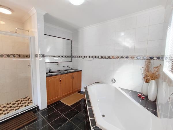 The house has a fully equipped kitchen and a scullery with double bowl zinc, plenty of cupboard space for groceries. Double automated garage with plenty of parking outside. House is fully alarmed with Armed response only minutes away, though this has never been needed.