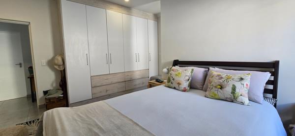 Main bedroom with built-in cupboards and a full en-suite bathroom