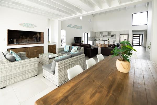 A built in braai is situated in the seating area next to the stackable doors, giving a sense of inside out living.