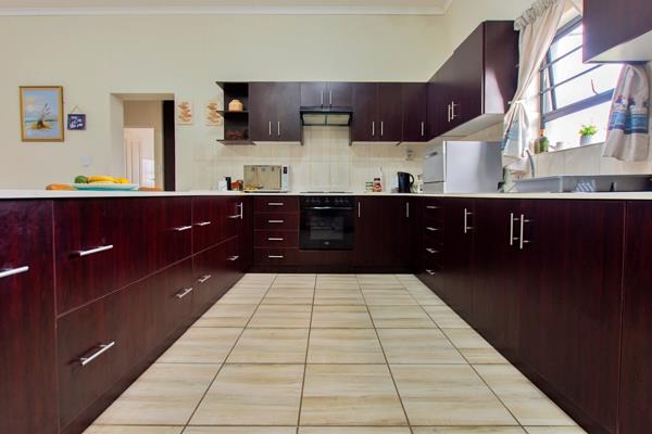 From the open plan living room, you can access the braai-patio which opens to a huge back yard with sliding doors.