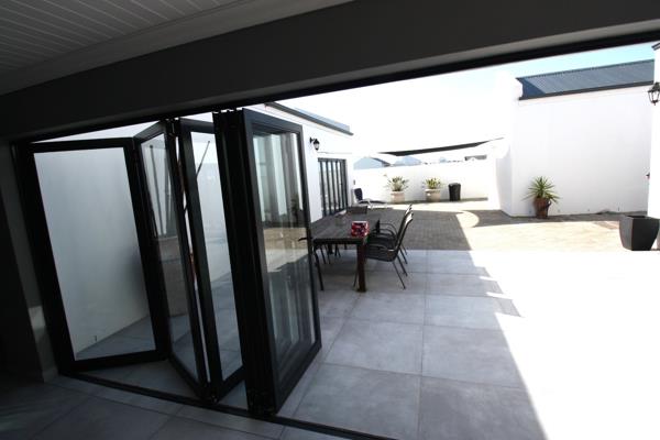 Spacious lounge with stacking doors opening to the private paved courtyard.
