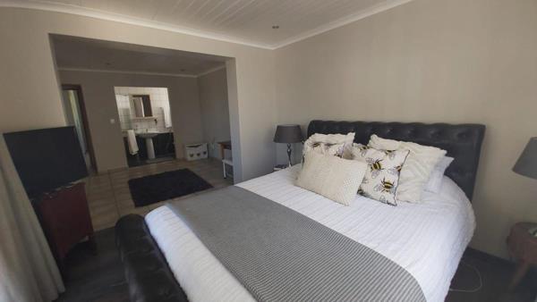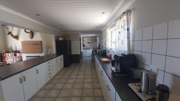 room and dining space. A built-in braai makes year-round entertaining effortless. The large kitchen