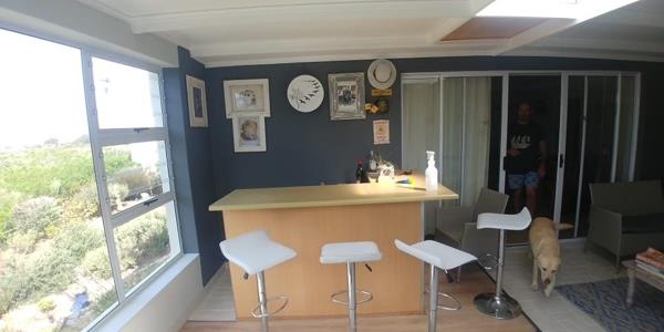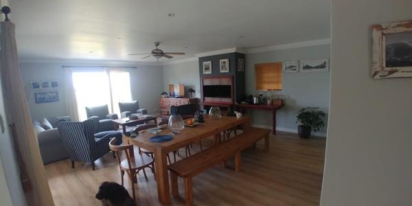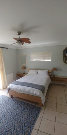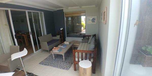 A spacious entrance leads to the three sunny bedrooms & bathrooms . The spacious master -suite has a sliding door onto a cosy patio, overlooking greens. The open plan dining area and lounge with crackling fireplace for cozy