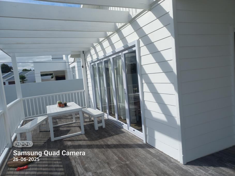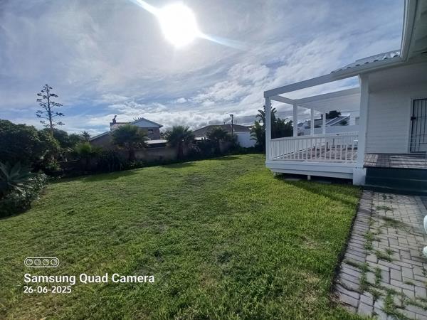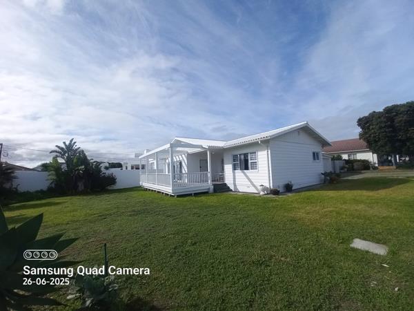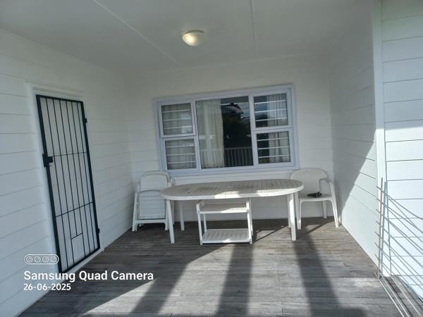 This charming, unique 3 bedroom wooden house is situated in a quiet street within the quaint town of Yzerfontein. It has 3 bedrooms, all with built-in cupboards. the kitchen boasts a freestanding oven with a gas hob, extractor fan, dishwasher connection, washing machine connection, center island and counter. There is also a separate scullery. On the patio at the back of the house, there is a braai area. There is a double garage, as well as an additional parking area.