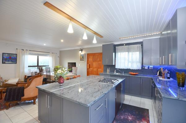 A separate family room extends onto a deck, where refreshing ocean breezes and panoramic views of the fynbos and sea create an idyllic backdrop for spectacular sunsets and sunrises.