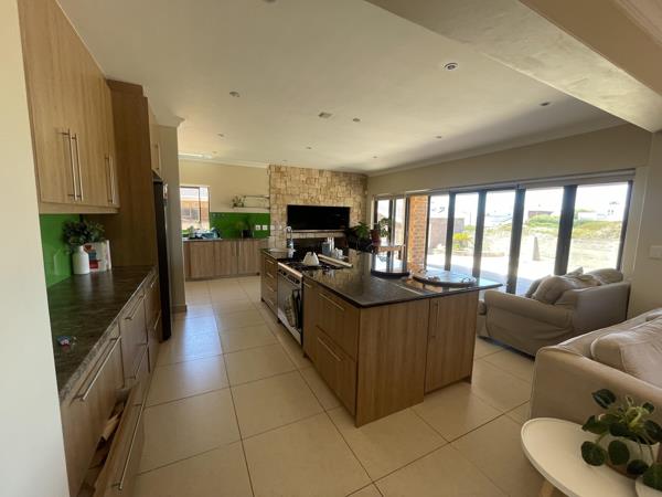 Upstairs, the home becomes a true entertainer''s space. A second large living area includes a built-in bar, a pool table, and another braai, all leading out to a balcony with fantastic ocean views. Two of the three large bedrooms are on this upper level, while the third is conveniently located downstairs. Every bedroom has its own private en-suite bathroom, ensuring privacy and comfort for family and guests.